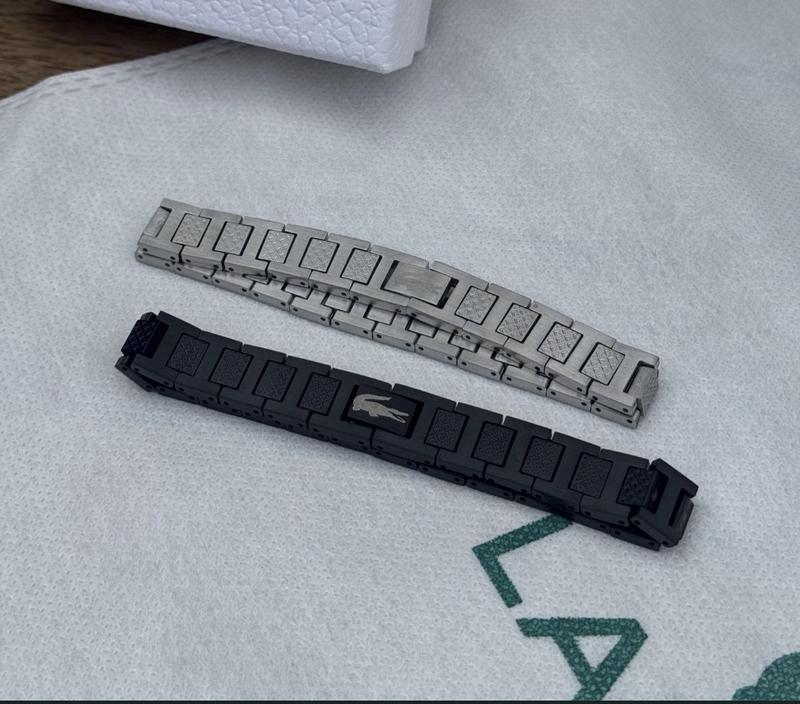 Стильні браслети Lacoste з нержавіючої сталі в двох кольорах: срібному та чорному. Особливості: • Матеріал: нержавіюча сталь високої якості • Розмір: універсальний 20 см • Регулюється як годинниковий браслет • Елегантний дизайн з логотипом крокодила • Міцна конструкція з ланками Підходить для щоденного носіння та особливих випадків. Класичне поєднання функціональності та стилю від французького бренду.