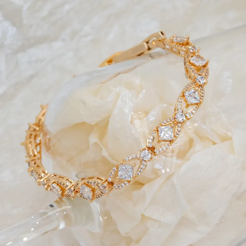 Вес 12.4 Длина 1 17+2 Камни вставки фианит Цвет камней белый Пол женский Производитель DGS Ширина 6.0 Материал Медицинский сплав Покрытие позолота 18К
