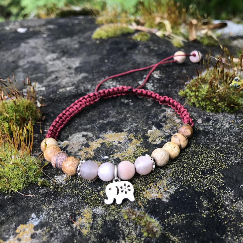 Браслет из яшмы, солнечного камня и серебренного слоника