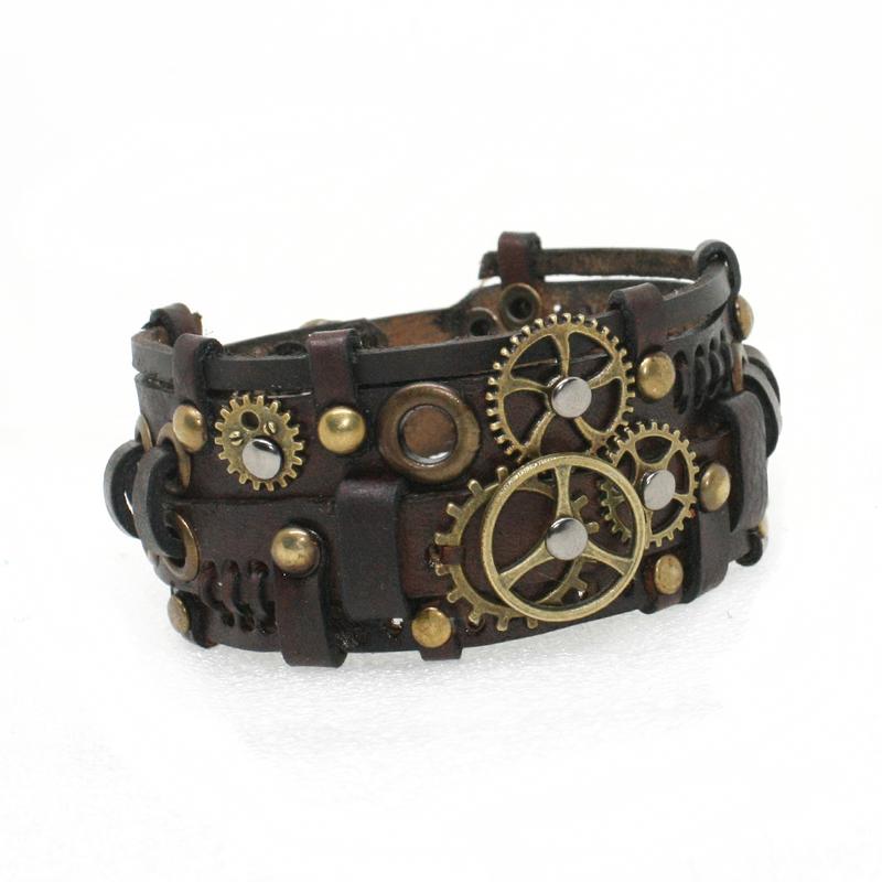 Винтажный кожаный браслет из натуральной кожи в стимпанк и готическом викторианском стиле