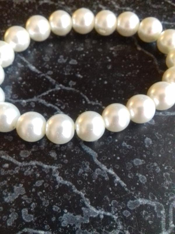 браслет с искуственного жемчуга(не пластмаса)бусины увесистые,блестящие..очень похожи на морской жемчуг)на резинке))прислали с испании)