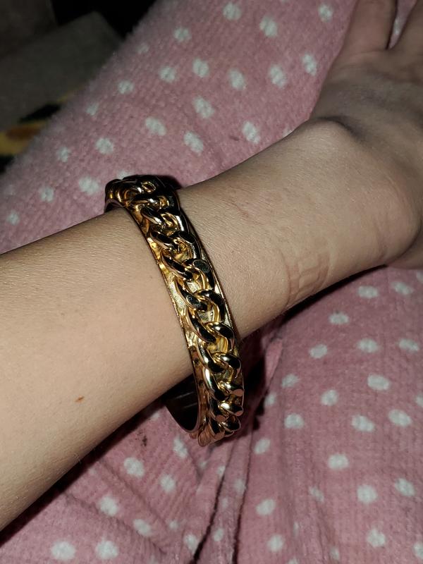Жёсткий браслет цепь диаметр внутри 7см. На мою худенькую руку большой. Состояние отличное, только изнутри чуть потёрта. Замеры по запросу. Возврат не предусмотрен.