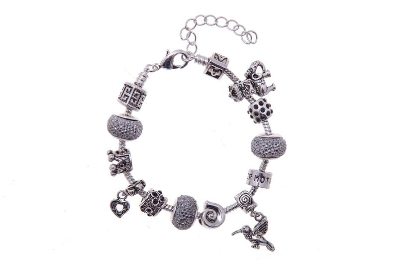 Браслет. Длина браслета 18 см. Металл - медицинский сплав. Размер бусин 9х14 мм, длина подвески 19 мм.