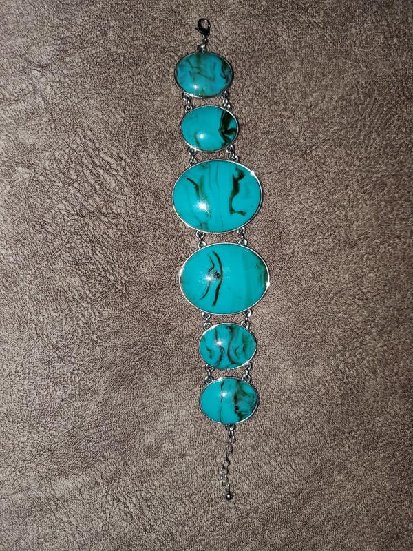 Винтажный красивый браслет под бирюзу. Говлит, кахолонг возможно, браслет тяжёлый. Подойдёт на любую руку. Состояние идеальное. Замеры по запросу. Возврат не предусмотрен.