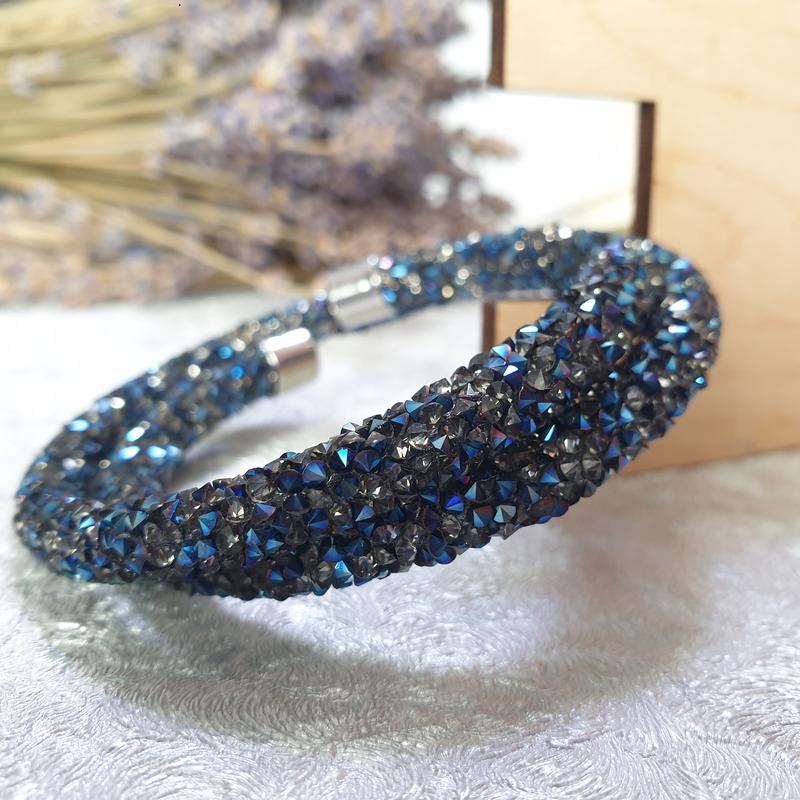 Этот аксессуар подчеркнет хороший вкус и станет Вашим любимым украшением. Браслет-змейка хорошо гнется и принимает нужную форму руки. Камушки прикреплены надежно, очень красиво переливаются на свете ;)