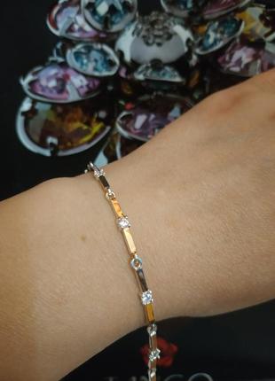Браслет срібний з золотими пластинами та фіанітами. арт. 831