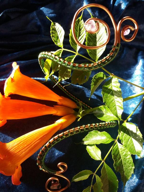 Браслет из проволоки (алюминевая, медная) с натуральным камнем (флюорит). Цвет: светло-коричневый, зеленый. Проволока мягкая, хорошо гнется, размер можно регулировать. Высота - 13 см, ширина - 8 см.