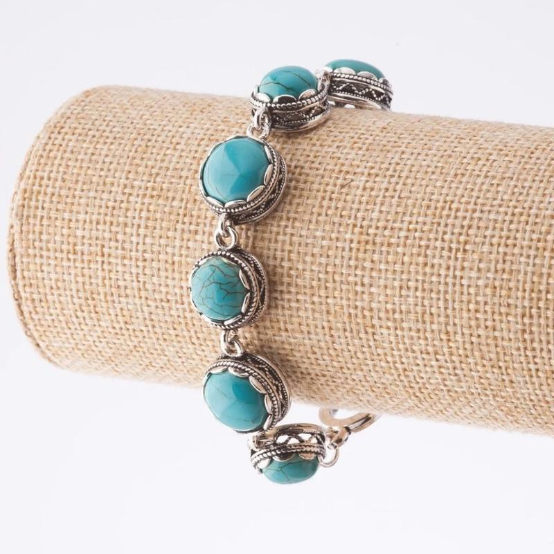 Браслет Бирюза круглый камень 7 шт. 15 и 14 мм больше меньше L-18-21см