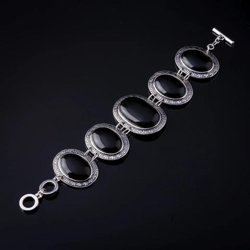 Браслет Агат черный 5 камней 22 см