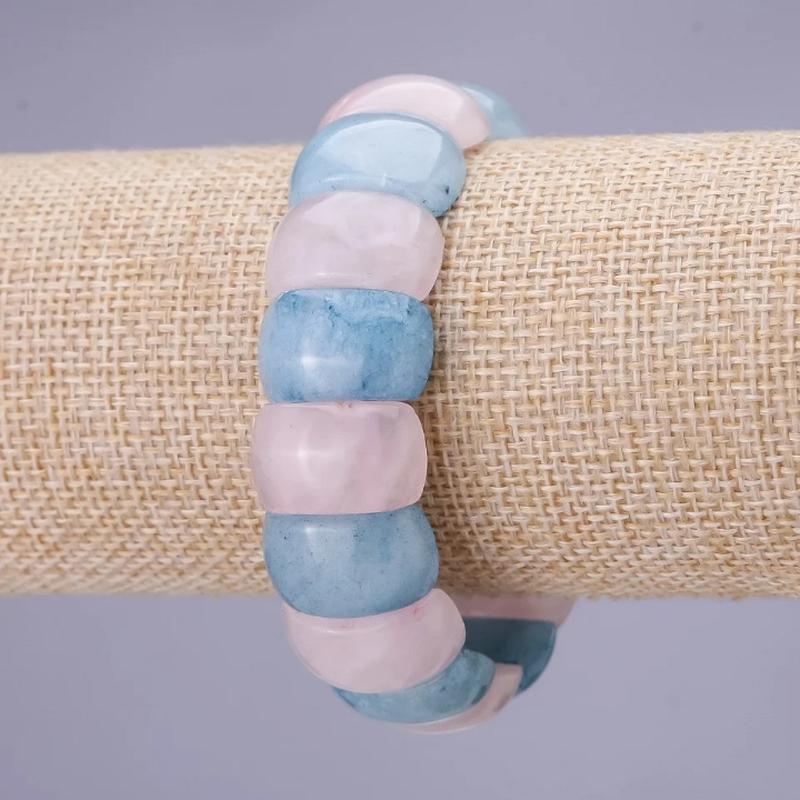 Браслет звено Розовый Кварц и Аквамарин 12х20(+-)мм на резинке