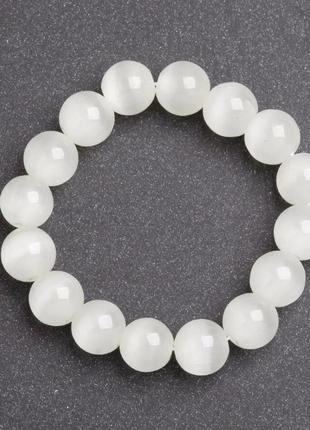 Браслет з каменю Котяче око Білий d-10мм на резинці обхват 18 см