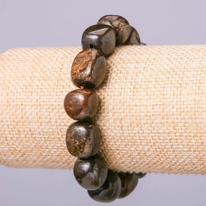 Браслет из натурального камня Петерсит d-16х14+-мм обхват 18см на резинке