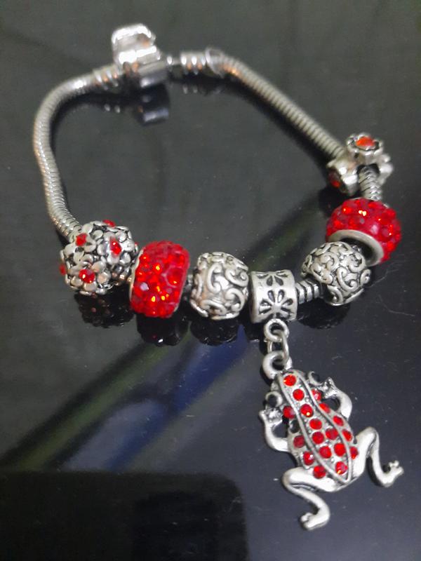 красивый браслет в красных камнях с подвеской, длинна 17см