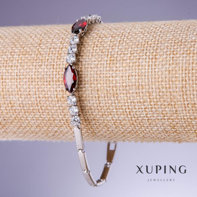 Браслет с красными цирконами "Рубин" s-3-6мм L-18-19см родий 18к