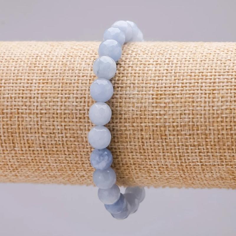 Браслет на резинке Аквамарин, граненный шарик 8мм обхват 18см