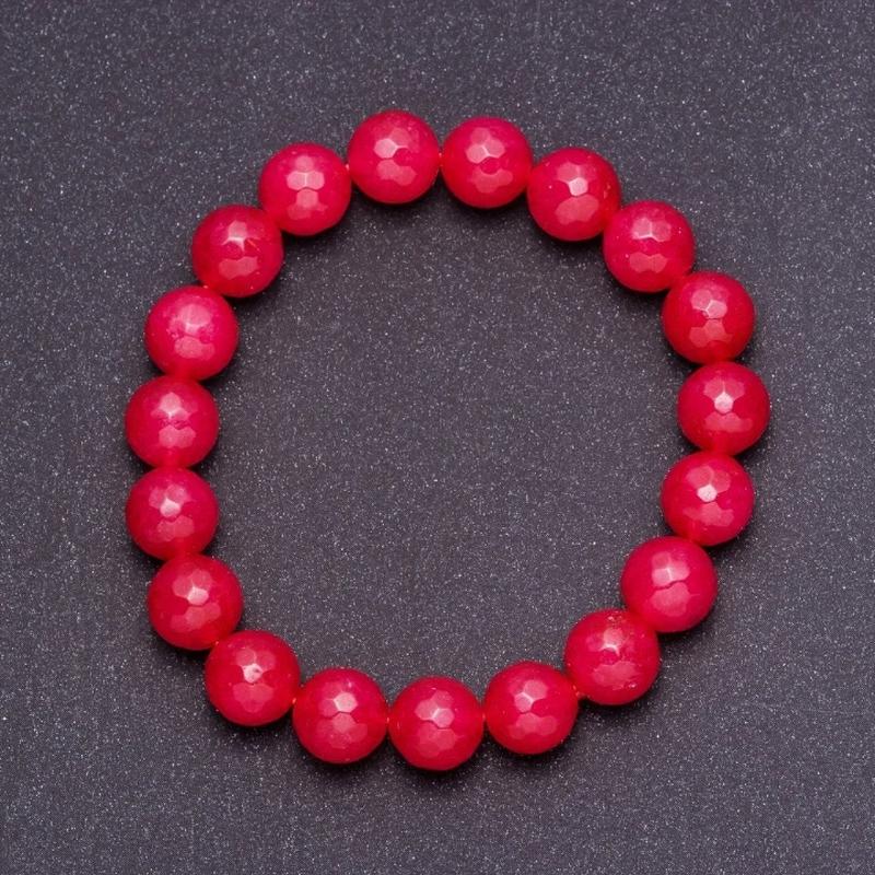 Браслет из натурального тонированного камня Турмалин граненный шарик d-10 мм (+-) на резинке обхват 18см