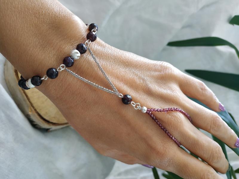 Слейв-браслет серебряный с гранатом ′раба любви′