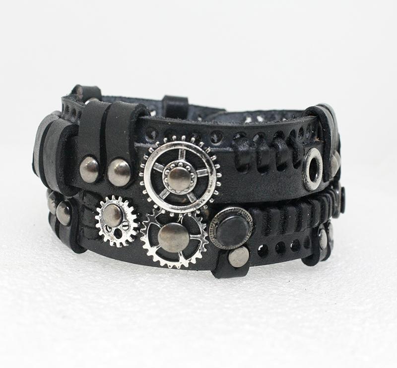Винтажный кожаный браслет из натуральной кожи в стимпанк и готическом викторианском стиле