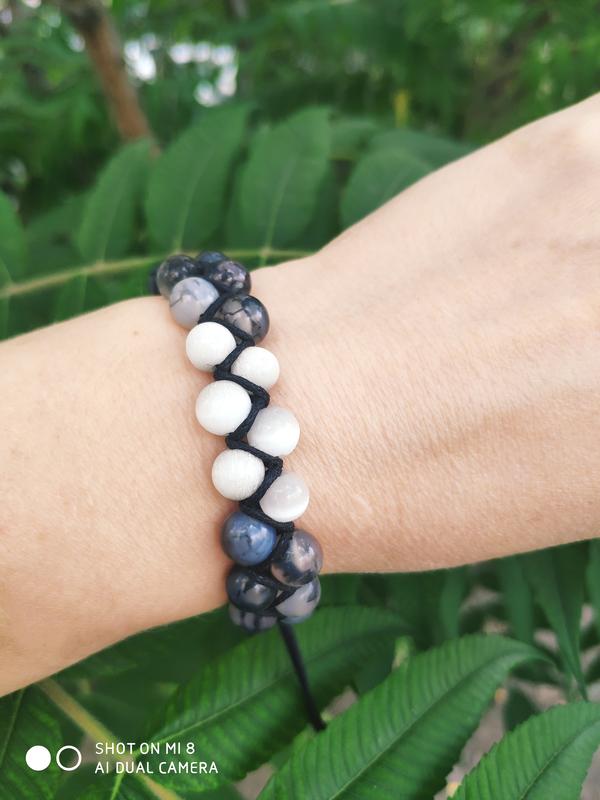 🙌 Шамбала подвійна з натурального каменю агат "Вени дракона" і кошачего очі по центру на затягуваннях і без металевої фурнітури - не викликає алергії. Яскраве стильне прикраса на кожен день.