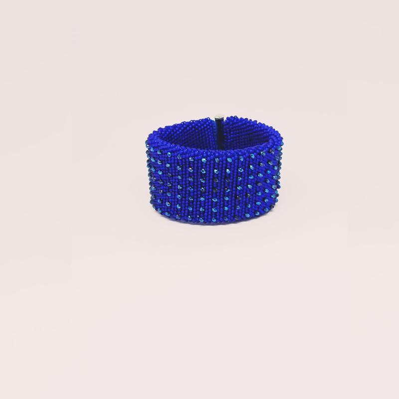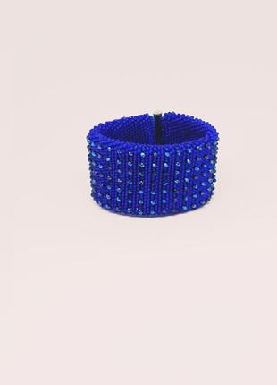 Браслет ручної роботи, сплетений крючком з бісером та кришталевими намистинами. ширина 4,5 см, довжина 19, 5 см, застібка слайдер на магніті