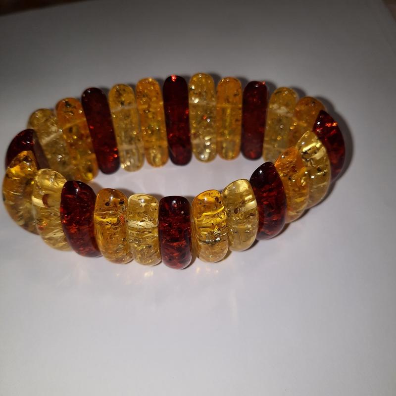Браслет на растягивающей резинке с разными бусинами. Диаметр-24, высота бусин-4 см