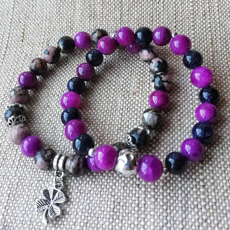 Чароит+родонит/агат. Натуральный камень. Ручная работа. Размер браслета корректирую под вашу руку. Подарочная упаковка бесплатно! 🍀Цена браслета 225 грн. 🌚Цена браслета 220 грн. При покупке набором скидка!