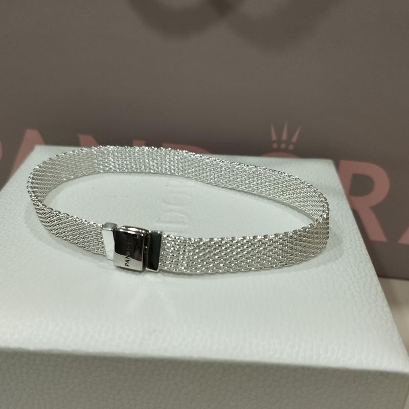Коллекция более декоративна, чем традиционные украшения Pandora. Браслеты Reflexions имеют сетчатый дизайн. Они выглядят на ручке очень аккуратно и нежно. Все бусины на браслет идут в виде плоских клипс - это означает, что Вам не придется для создания новых комбинаций снимать все бусины, как на браслетах Moments. У Вас есть больше свободы чтобы переставлять шармы по своему усмотрению. Каждая клипса имеет силиконовые подушечки, которые не дают клипсе двигаться по браслету и фиксируют их на одном месте. Выбрать размер для серии Рефлекс очень просто, померьте запястье и добавьте всего 1 см! Например запястье 17, значит Вам нужен 18 размер. Доступны размеры от 16 до 21 Металл: Серебро S925 є інші моделі браслетів