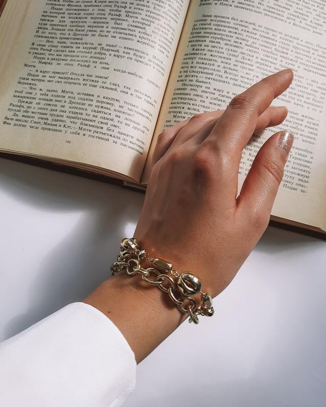 Браслет, в якому гармонійно поєднались ніжність намистинок та грубоватість ланцюжка ❤ Виготовляється з біжутерного сплаву, особливістю є світлий відтінок золотого покриття. Довжина браслету 18 см + 7 см ланцюжка для подовження.