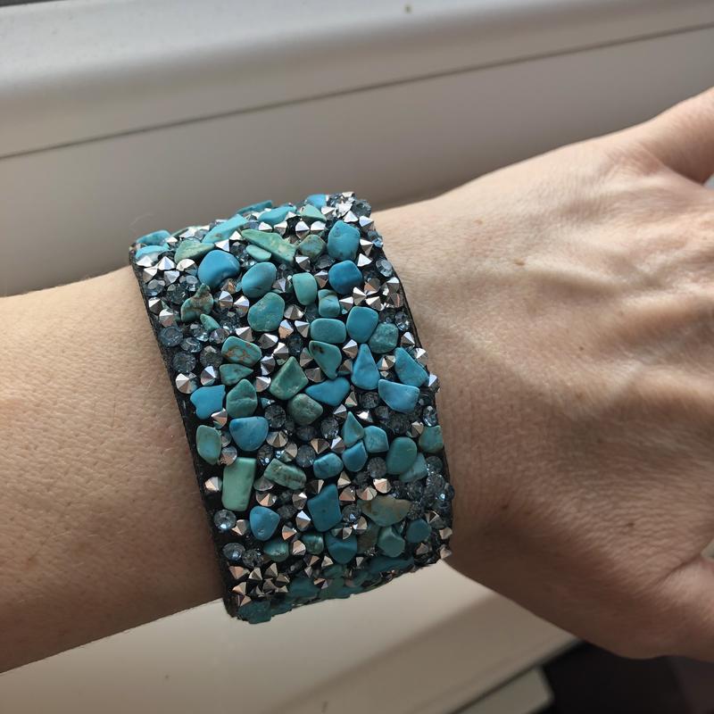 Браслет с осколками бирюзы и кристаллами. Надёжная магнитная застежка. Длина браслета 18 см , ширина 3,5 см . 🚗 отправка в день заказа 💰возможен наложенный платёж