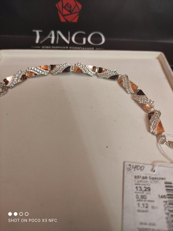Браслет срібний з золотими пластинами та фіанітами