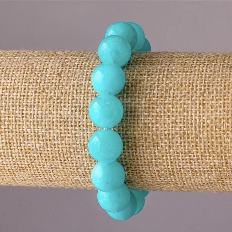 Браслет Аквамарин на резинке гладкий шарик d-12мм обхват 18см