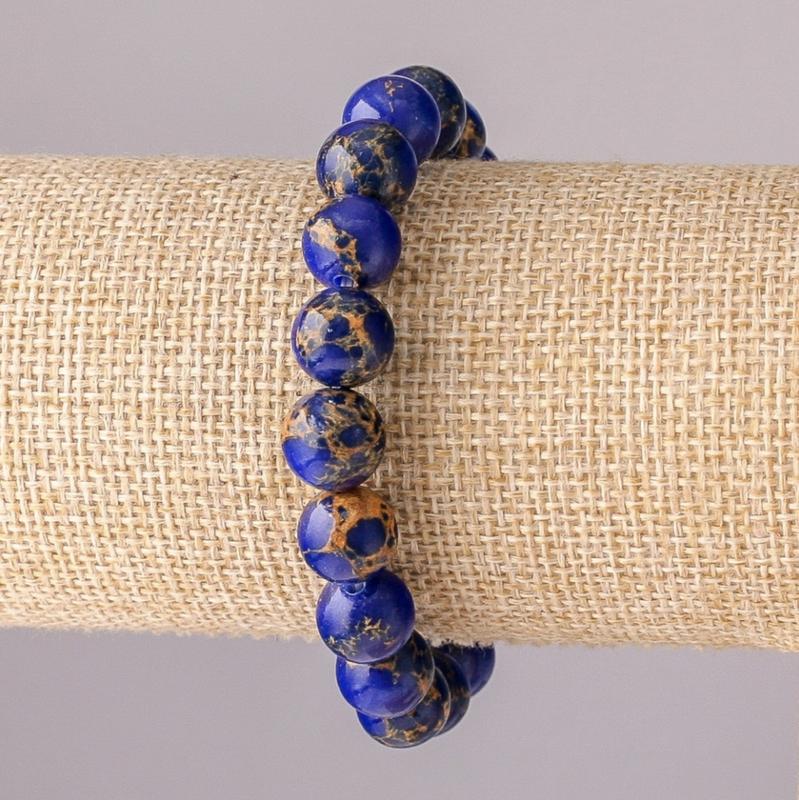 Браслет Варисцит синий на резинке гладкий шарик d-10мм обхват 18см