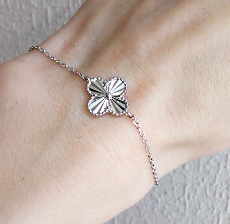 Родное серебро 925 пробы (цвет белого золота, не темнеет), производство Италия. Браслет в стиле Van cleef. Алмазна грань. Вес 2.04 гр. Длина 16 см + 3 см удлиняющая цепочка. Все украшения с пробой и биркой. Абсолютно новые.