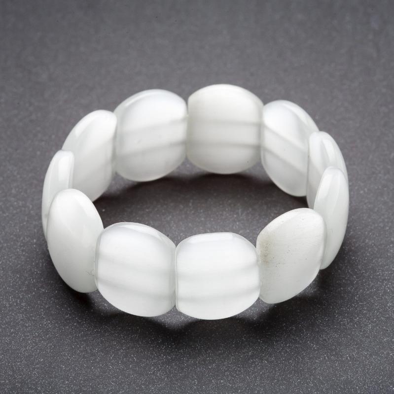 Браслет Кошачий глаз на резинке цвет Жемчужный, 15х20мм