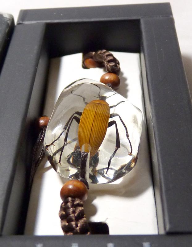 Браслет на затяжке с натуральным насекомым внутри искусственного камня из прозрачного пластика