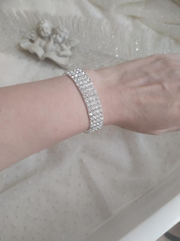 Симпатичний браслетик у стразах в 4 ряди. Розмір універсальний, на резинці.