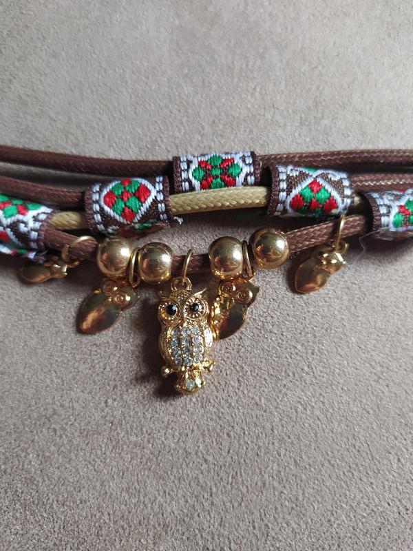 Интересный браслет с подвесками совушками выполнены из текстиля, металла. Центральная совушками с кристаллами. Б/у. Условия совершения покупки: • Если нужны дополнительные фото или замеры — пишите, с удовольствием вам все предоставлю. • Все интересующие вопросы задавайте до совершения покупки, с радостью на них отвечу. • Товар возврату и обмену НЕ подлежит. • 100% оплата на карту Приват Банка. Комиссию оплачивает покупатель. • Доставка Новой Почтой или Укрпочтой.
