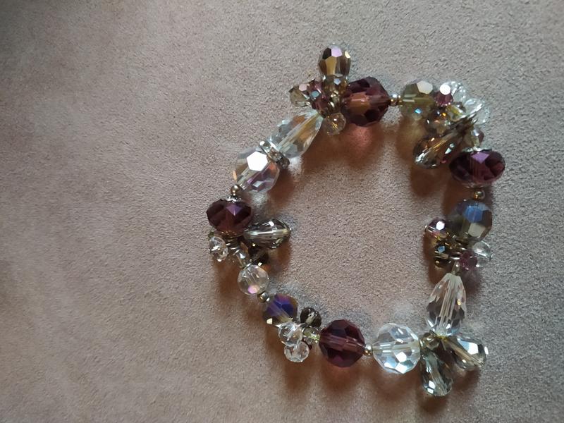 Шикарний браслет з чеського скла. Покриття АВ. На резинці. На середню ручку. Б/у. Умови здійснення покупки: • Якщо потрібні додаткові фото та заміри — пишіть, із задоволенням вам все надам. • Всі питання задавайте до покупки, з радістю на них відповім. • Товар поверненню і обміну НЕ підлягає. • 100% оплата на карту Приват Банку. Комісію оплачує покупець. • Доставка Новою Поштою або Укрпоштою.