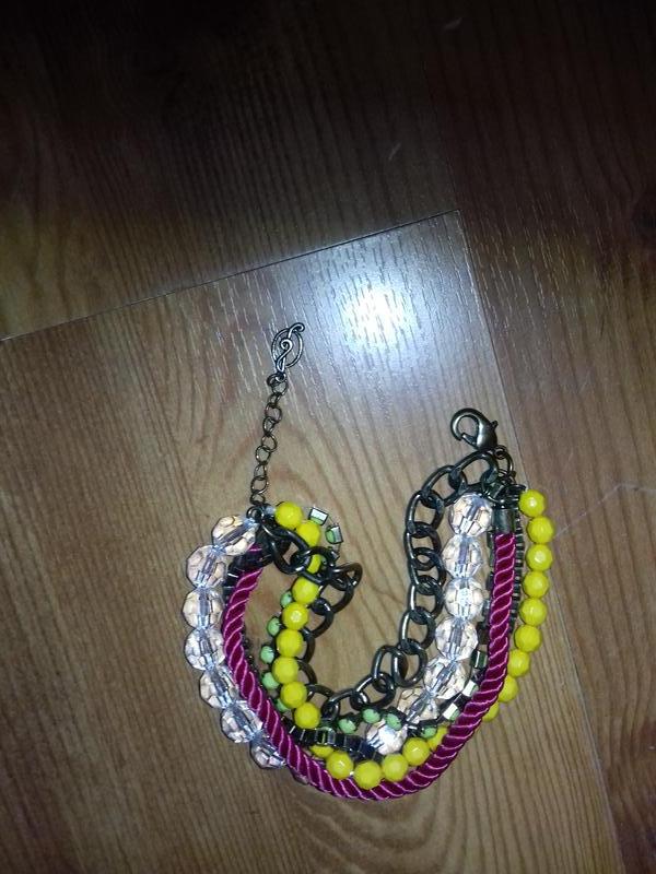 Браслет из цветных бусинок и цепочек.Нержавейка.Длина регулируется