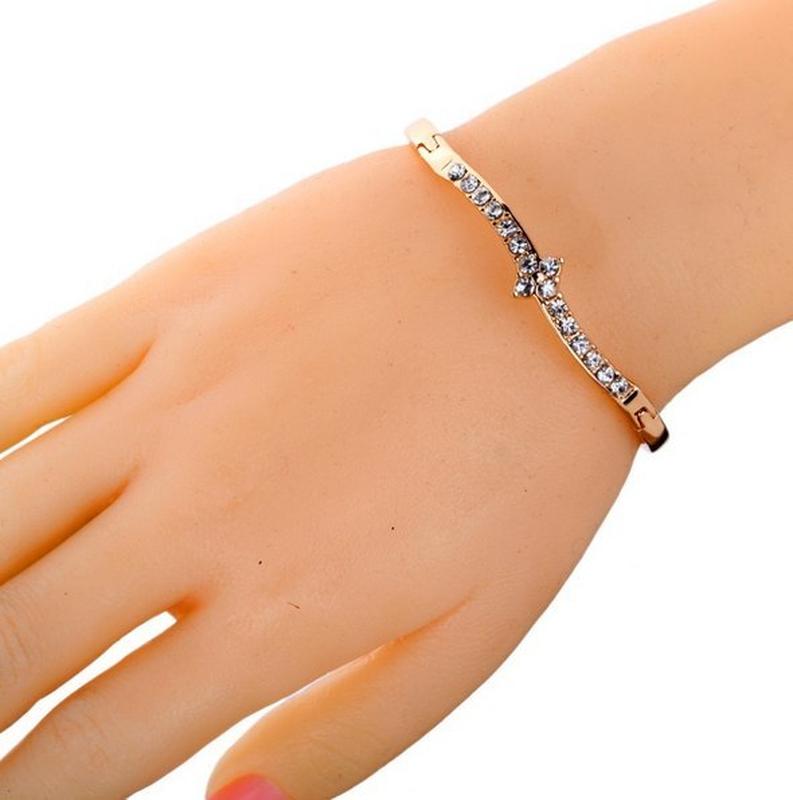Обворожительного дизайна позолоченный браслет в стразах - элегантное украшение Вашего образа! Диаметр - 6 см Состав: ювелирный сплав, золочённое напыление, австрийские стразы При заказе 3-х украшений скидка - 10%! Подписчикам и постоянным покупателям - скидки 5 и 10%! Для Киева возможен самовывоз по желанию! Доставка Укрпочтой и Новой Почтой. Отправка в течении 24 часов! Доставка Укрпочтой с полной оплатой, Новой Почтой - возможен наложенный платёж по предоплате. Оплата на Карту ПриватБанка. Доставка за Ваш счёт. Есть условия бесплатной доставки в "Обо мне" Торга НЕТ!!! Артикул - 2288