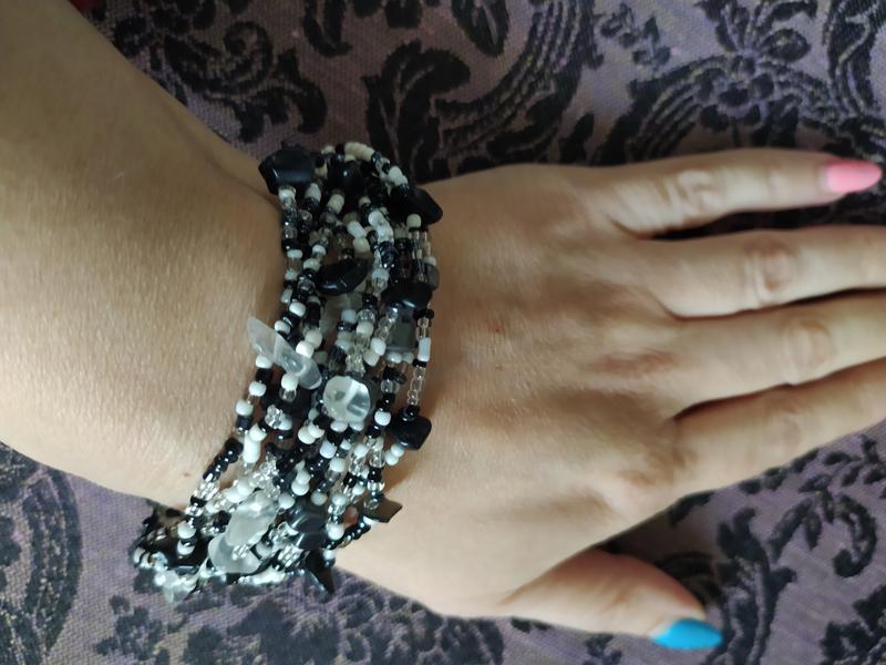 Браслет из бисера и крошки натуральных камней. Воздушный.