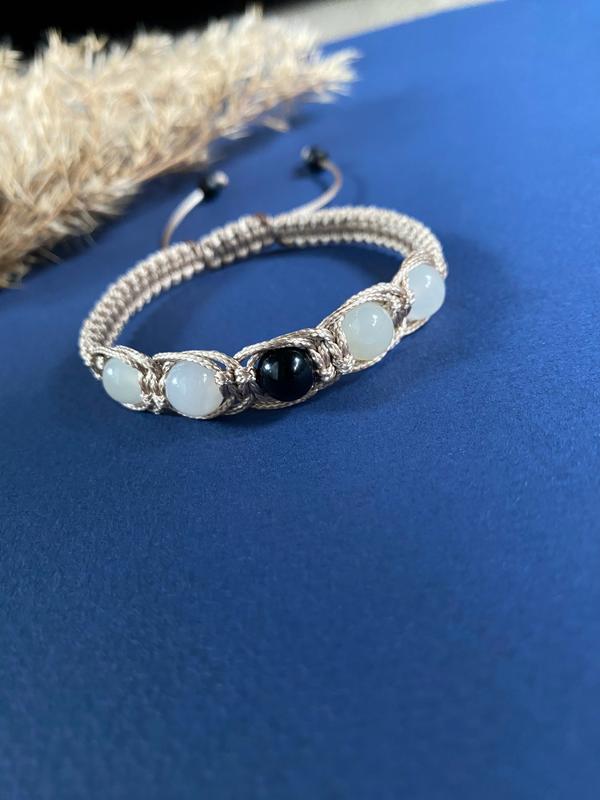 Браслет-оберіг, з оніксом та агатом 8 мм. Розмір можна виготовити під вас(просто виміряйте довжину запястя і вкажіть при замовленні). А також колір шнурку може бути іншим. Онікс-убереже від непреємностей,дасть внутрішню силу, поліпшить розумові здібності,розкриє творчий потенціал, Білий онікс захищає власника від людей зі злими думками, пліткарів і заздрісників. Агат- Допомагає власнику вчасно розпізнати обман, виявити ворогів. Камінь попереджає про прийдешні неприємності. Його можна використовувати для медитацій, при тривалому розгляданні агату людина заспокоюється, психіка приходить в норму.Мінерал дарує власникові впевненість в своїх силах, розвиває творчі здібності.