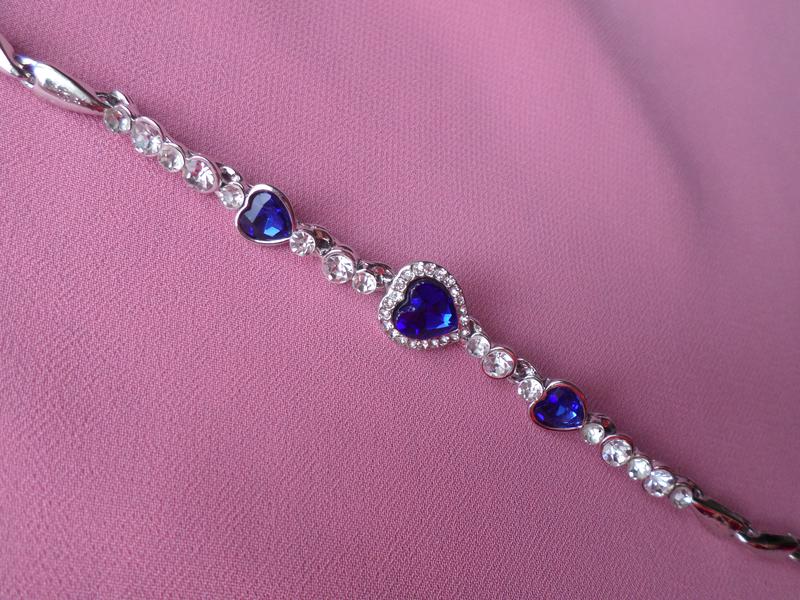 Браслет с сияющими кристаллами синего и белого цвета. Длина - 17.5 см. Длина общая, с цепочкой - 21,5 см. ширина - 0,5 * 12 мм.