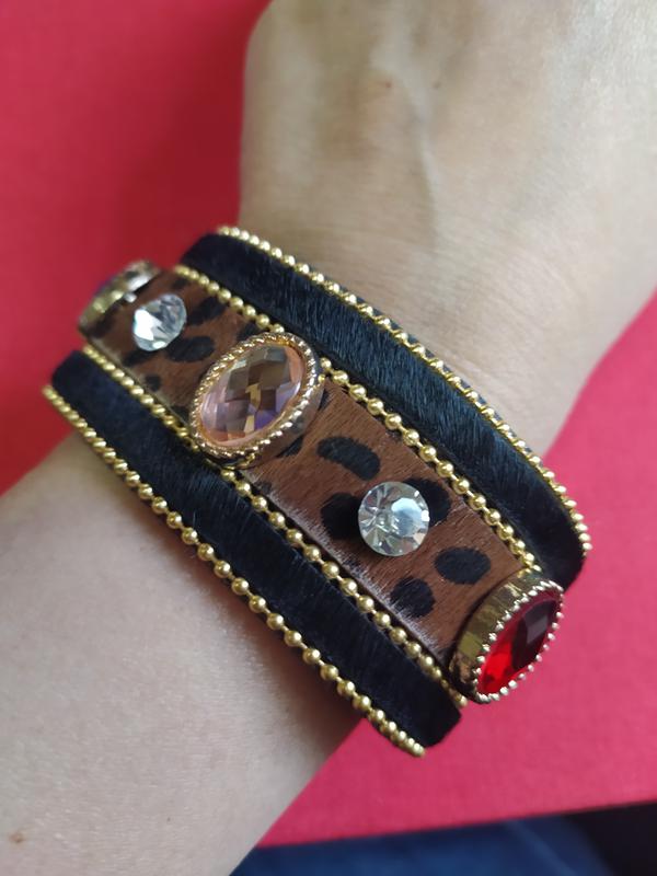 Браслет кожа+ кристаллы стекло