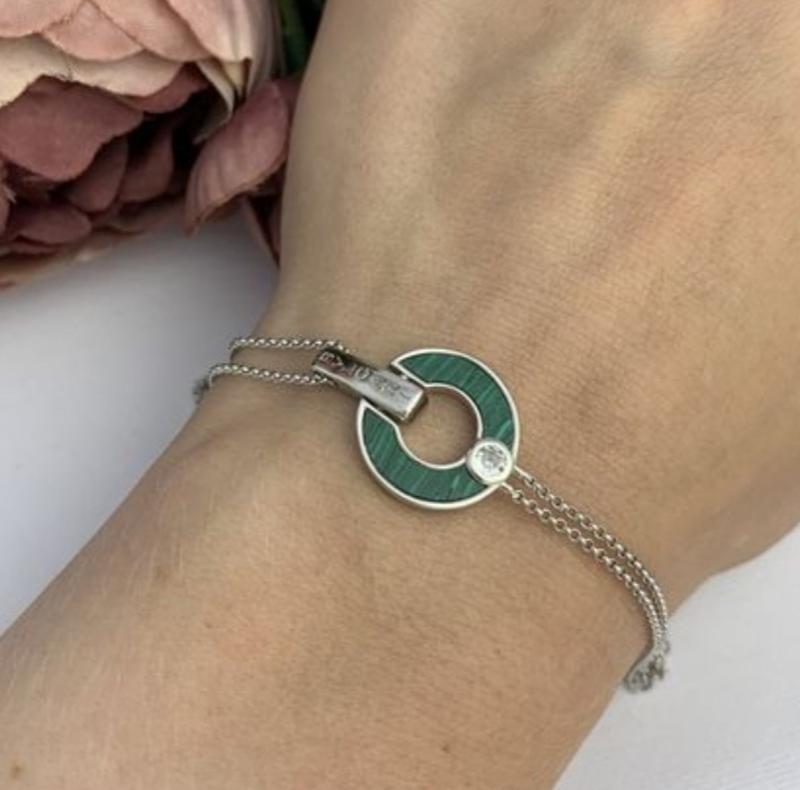Браслет 925 пробы с малахитом. Вес украшения 4,19г. Страна происхождения: Италия. Состав: Серебро 925/вставка: малахит. Вид покрытия: Родий Размер изделия: 17-20 см Вставка: малахит Арт 2086376