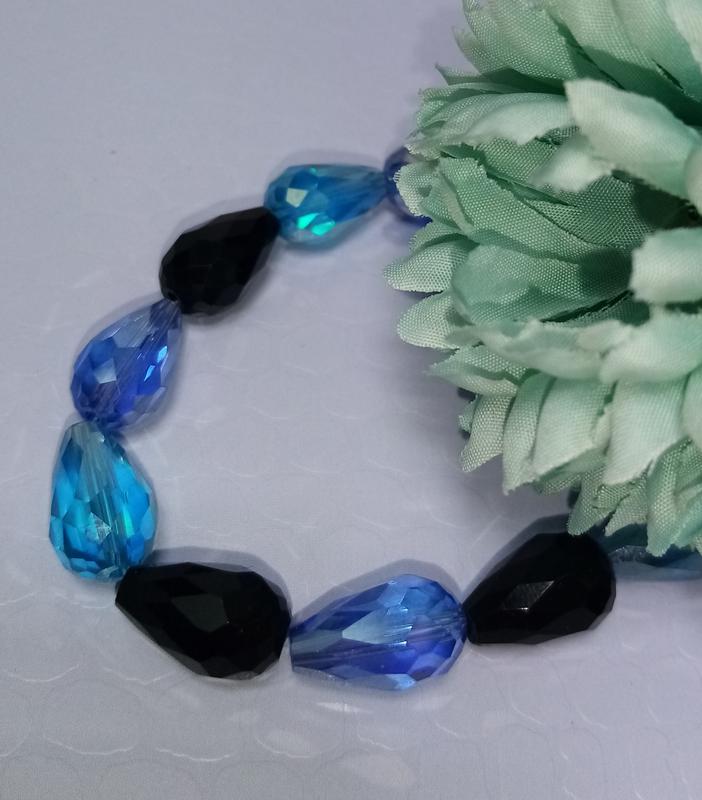 Стильный чешский браслет из бусин в виде крупных капелек. Голубые бусины с покрытием АБ.