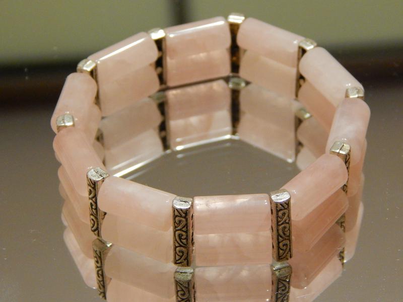 натуральний камінь рожевий кварц, розмір намистин 17×8мм, фурнітура металева