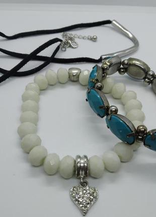 лот из двух браслетов белый next стеклянные бусины второй пластик оба на резинке плюс подвеска на шнурке с застёжкой цена за все