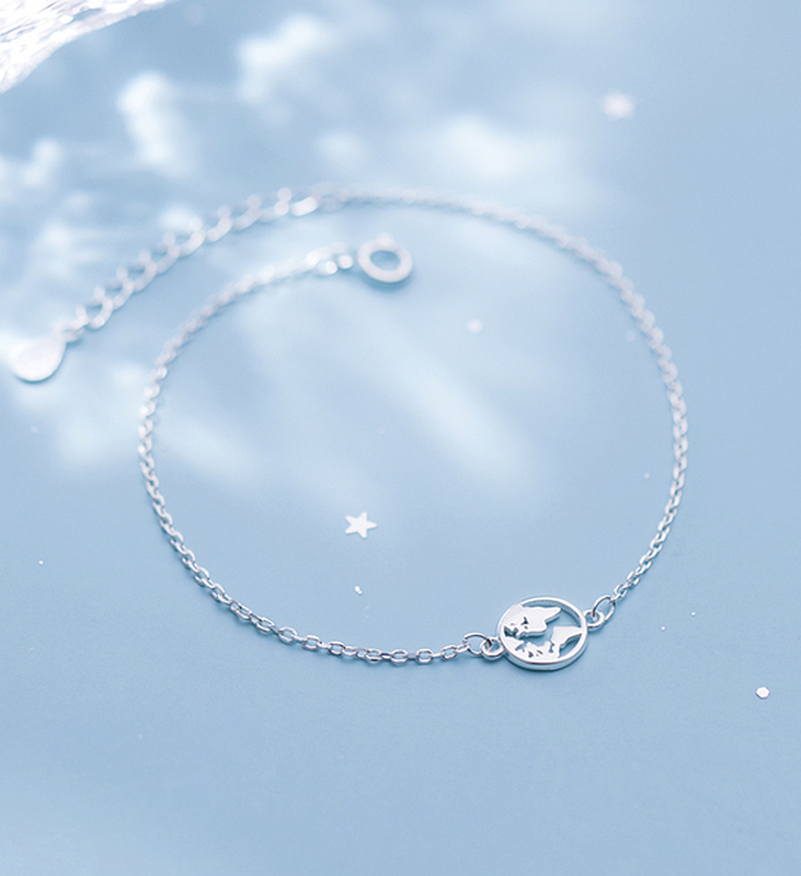 Браслет серебряный Карта мира, браслет Круг в стиле Минимализм из серебра 925 пробы, длина 16+3 см.
