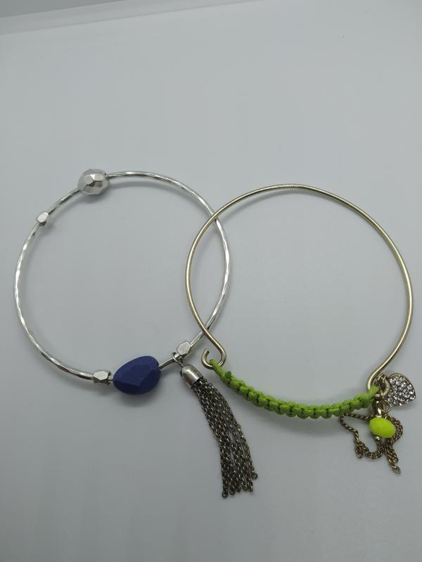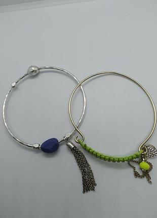 два браслета на руку в золотом цвете на застёжке и сердечком с кристалликами второй жёсткий в серебряном цвете.внутр.диаметр 63 мм